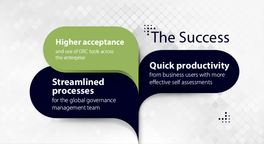• Clients can also benefit from testing and performance monitoring services for their GRC installations. Our custom-built, conversational AI based regulatory reporting can simplify the reviewing of GRC data by leadership.