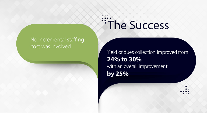 The client wanted to improve upon the existing dues collection rate (24%) through a renewed debtor contact strategy.