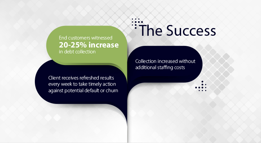 Alliance one achieved 20-30% year-over-year uplift in collections consistently over a period of two years, resulting in a 40% financial ROI for 2021.Findability Sciences helped them formulate an AI-based propensity score model to prioritize and call the most likely payers first. This partnership resulted in increased revenue for Alliance One and measurable financial impact for their customers.